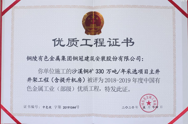 沙溪銅礦采選項(xiàng)目主井井架工程(部?jī)?yōu))
