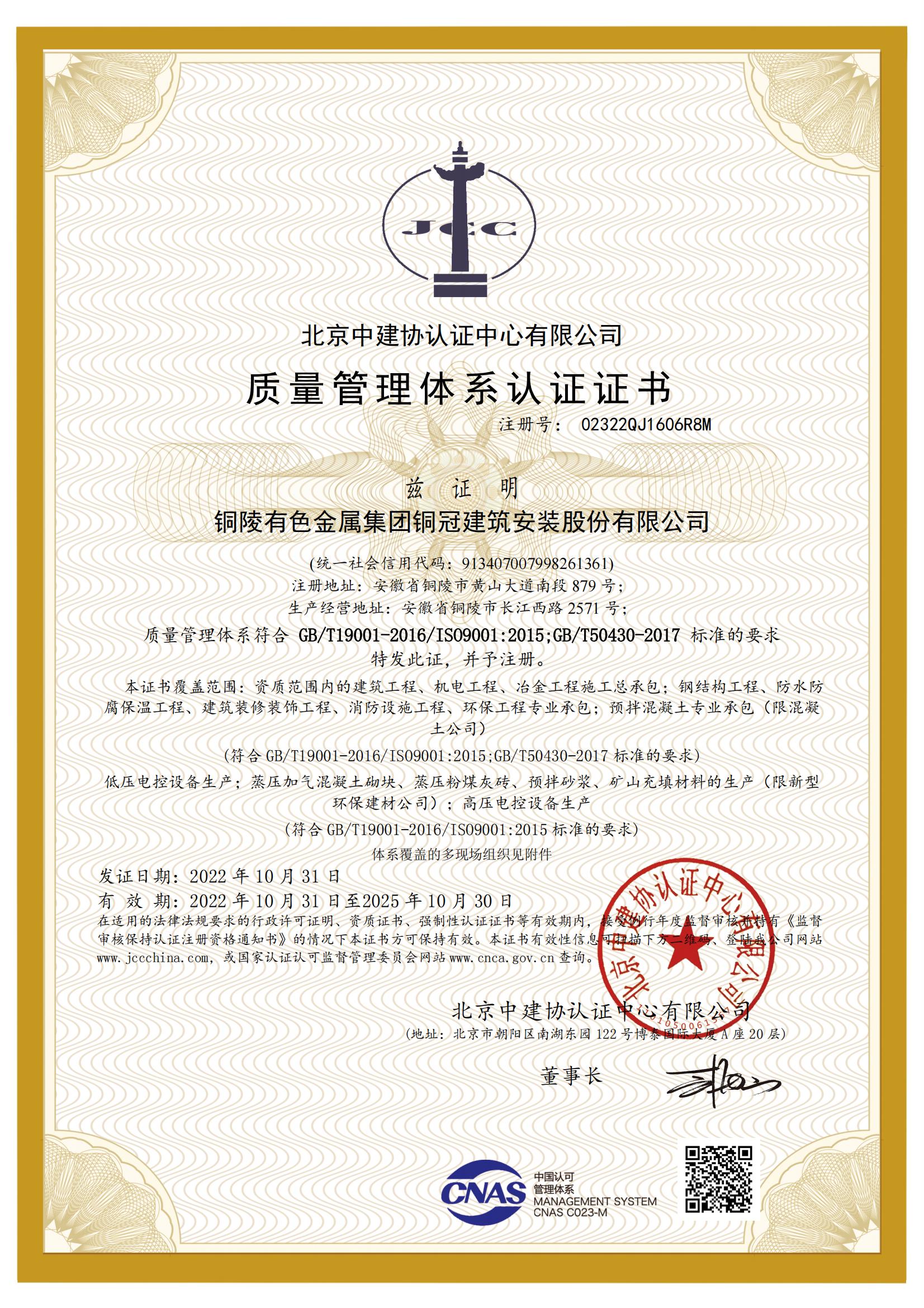 • 有色金屬工業(yè)建設(shè)工程質(zhì)量檢測機(jī)構(gòu)資質(zhì)證書